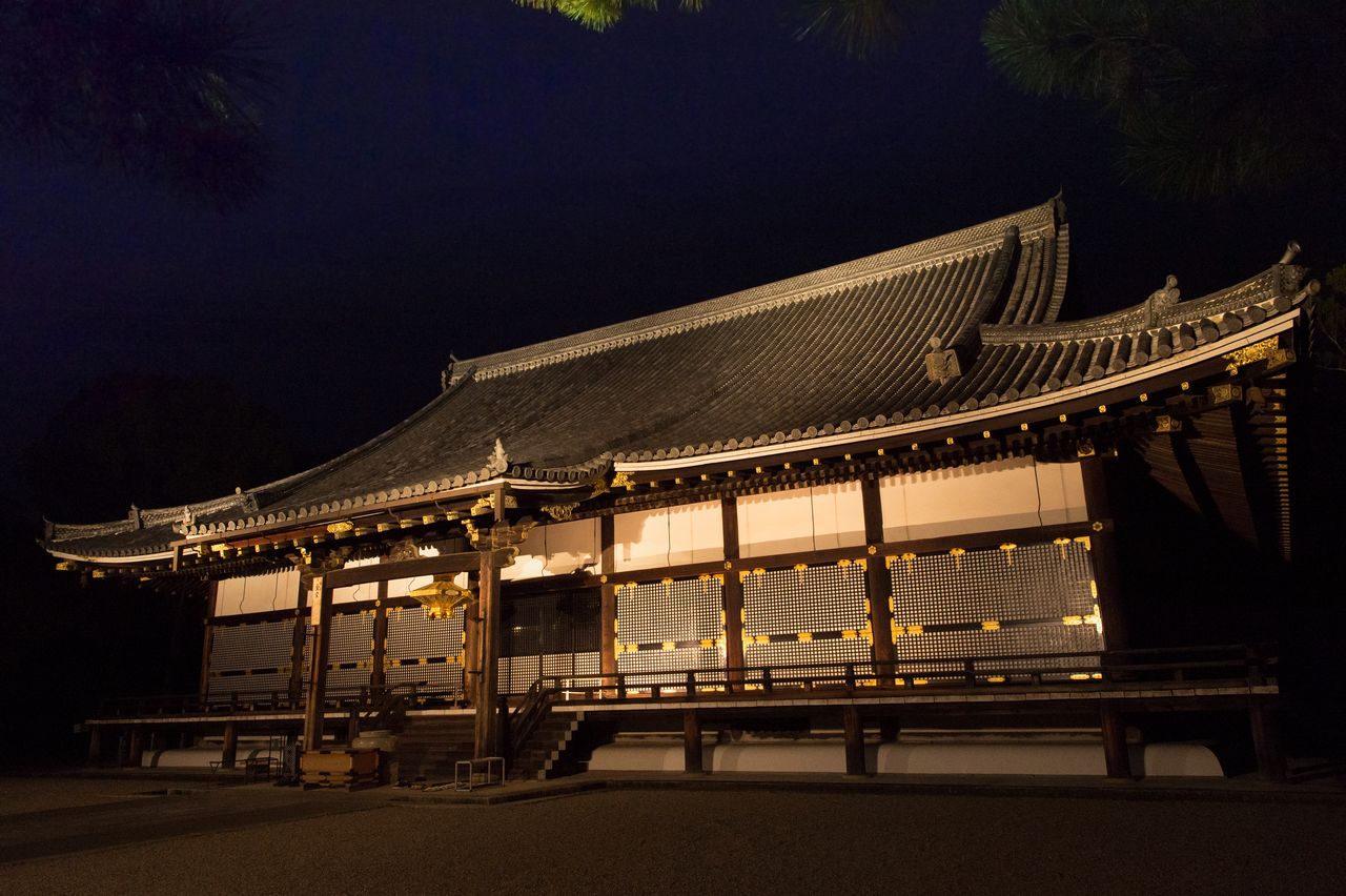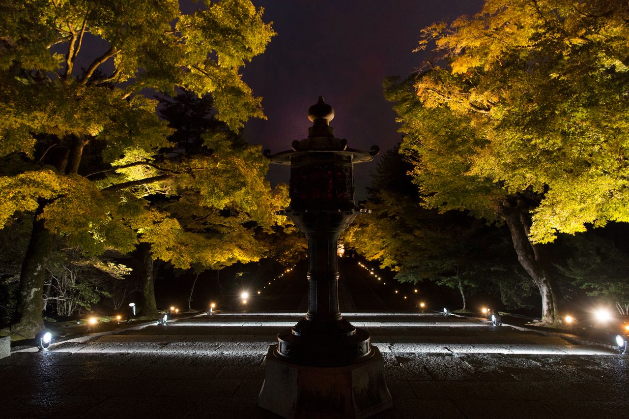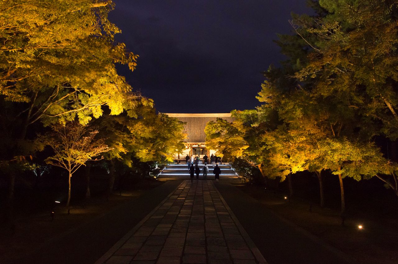 أرضية معبد نينّاجي مضاءة في الليل.