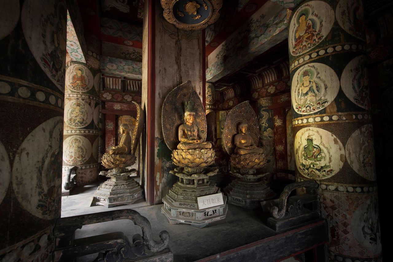 التمثال الرئيسي في قاعة كوندو هو لأميتابها (أميدا) ومحاط بتمثال أفالوكيتسافارا (كانّون) على اليسار وماهاستهامابرابتا (دايسيشي بوساتسو) على اليمين.