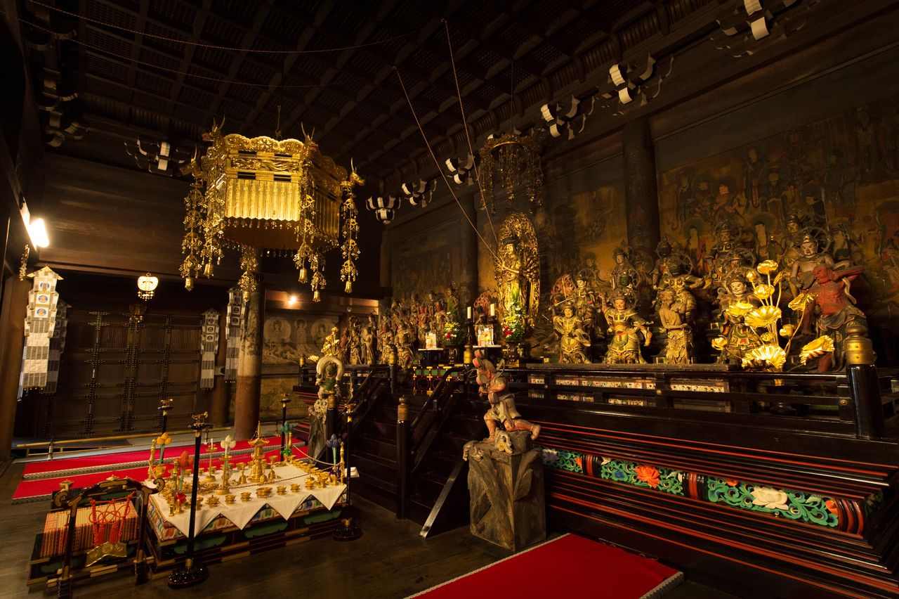 المجسد الرئيسي في قاعة كوندو هو تمثال لأميتابها (أميدا). وقد تم نقل الهيكلين سيئيدين وشينشيندين المحددين ضمن الكنوز القومية، إلى نينّاجي أثناء فترة ’’كان ئي‘‘ (1624-1644).