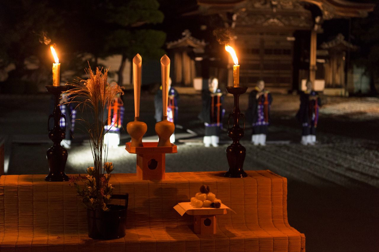 بانتظار الضيوف الذين يمكثون الليل في المعبد تجارب ثقافية لا تمحى من الذاكرة. حيث يمكنهم اختيار جلسة لمشاهدة القمر على ضوء الشموع في الحديقة الجنوبية لمقر الإقامة الإمبراطوري ’’غوتين‘‘ بينما ينشد الكهنة شوميو. وباستطاعتهم الاستمتاع بجمال القمر في الخريف فوق رمل الحديقة الأبيض مع تناول زلابية من أرز الدانغو ومع أعشاب السهول اليابانية ’’سوسوكي‘‘، تماما مثلما كان مؤسس المعبد الإمبراطور أودا يفعل. وهناك خيار آخر يتمثل في مشاهدة اللوحات الجدارية داخل مباني المعبد مع دليل سياحي للتعليق عليها، أو ترتيب طقوس تقديم الشاي في غرفة هيتوتيي المكان المفضل للإمبراطور كوكاكو.