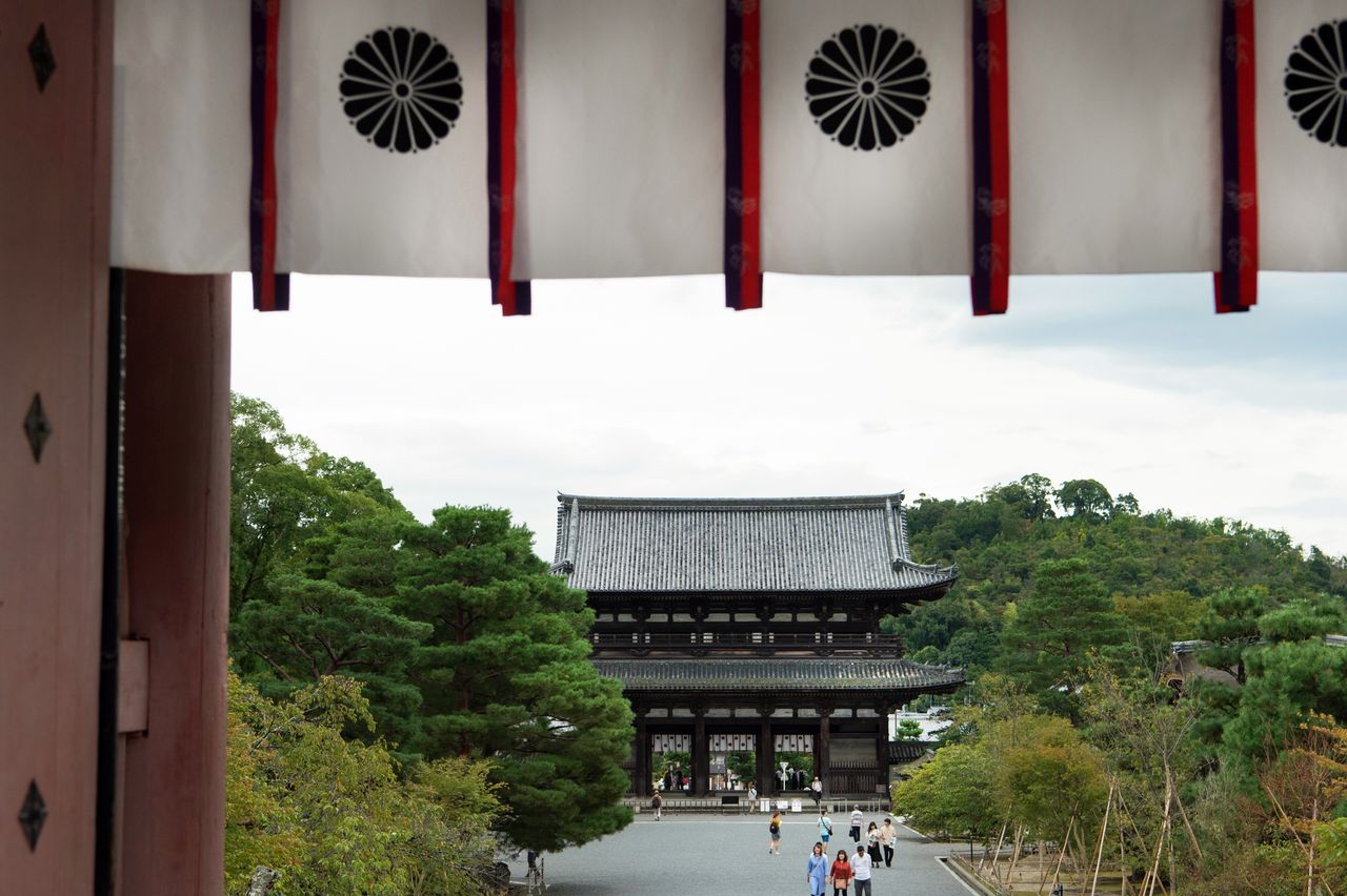 تظهر على الستارة القصيرة في أعلى بوابة نيومون علامة زهرة الأقحوان وهي رمز العائلة الإمبراطورية. الدخول إلى أرضية المعبد مجاني، ولكن هناك رسوم مقابل رؤية مقر الإقامة الإمبراطوري ’’غوتين‘‘ وقاعة الكنوز رييهوكان ومشاهدة عروض خاصة.