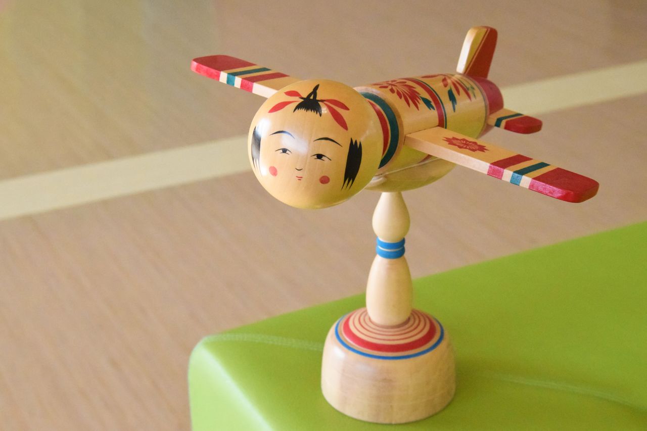 طائرة على شكل دمية كوكيشي معروضة في مكتب محافظة ميياغي.