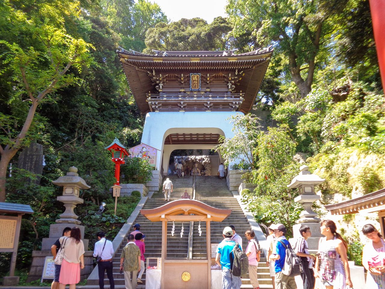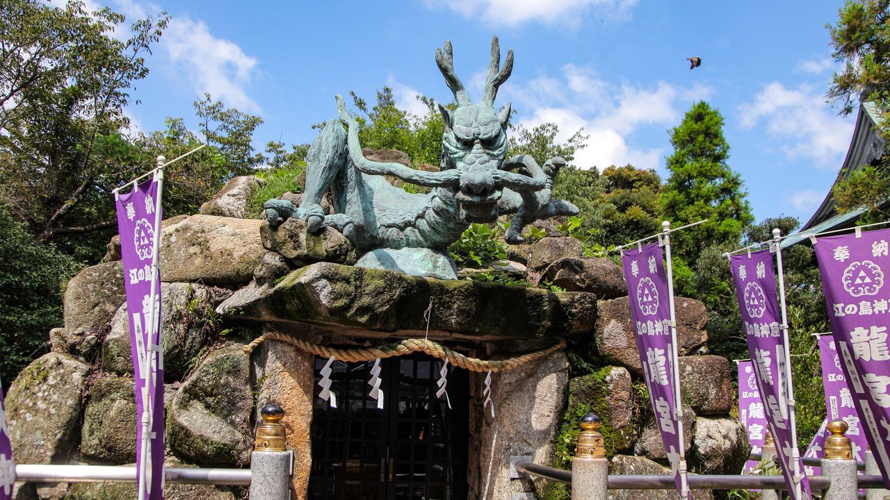 يأخذ معبد إنوشيما اسمه من الجزيرة التي تعد موقعا سياحيا شهيرا بمحاذاة ساحل شونان. وهذا المعبد هو المفضل لدى المصلين منذ فترة إيدو (1603-1868)، ويُبجِل الإلهة ”بينزايتين“ المستوحاة من التقاليد البوذية الهندية والتي ترتبط بأشياء مثل المياه والفنون والحكمة والثروة.