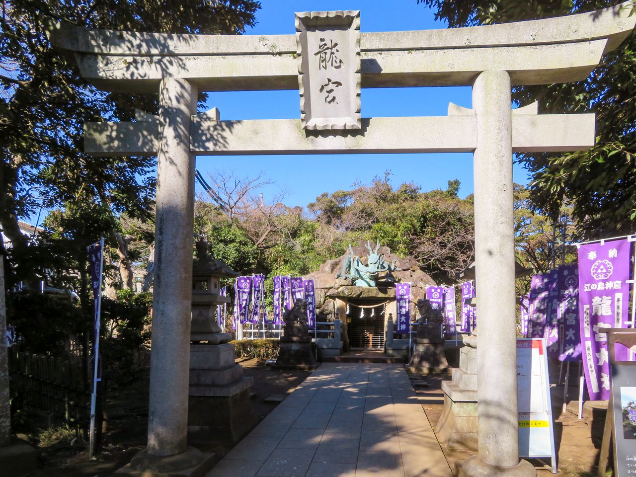 بوابة معبد إنوشيما مصممة على غرار قصر ”ريوغو جو“ الأسطوري الموجود تحت سطح البحر وفق المعتقدات الشعبية اليابانية (بإذن من معبد إنوشيما).