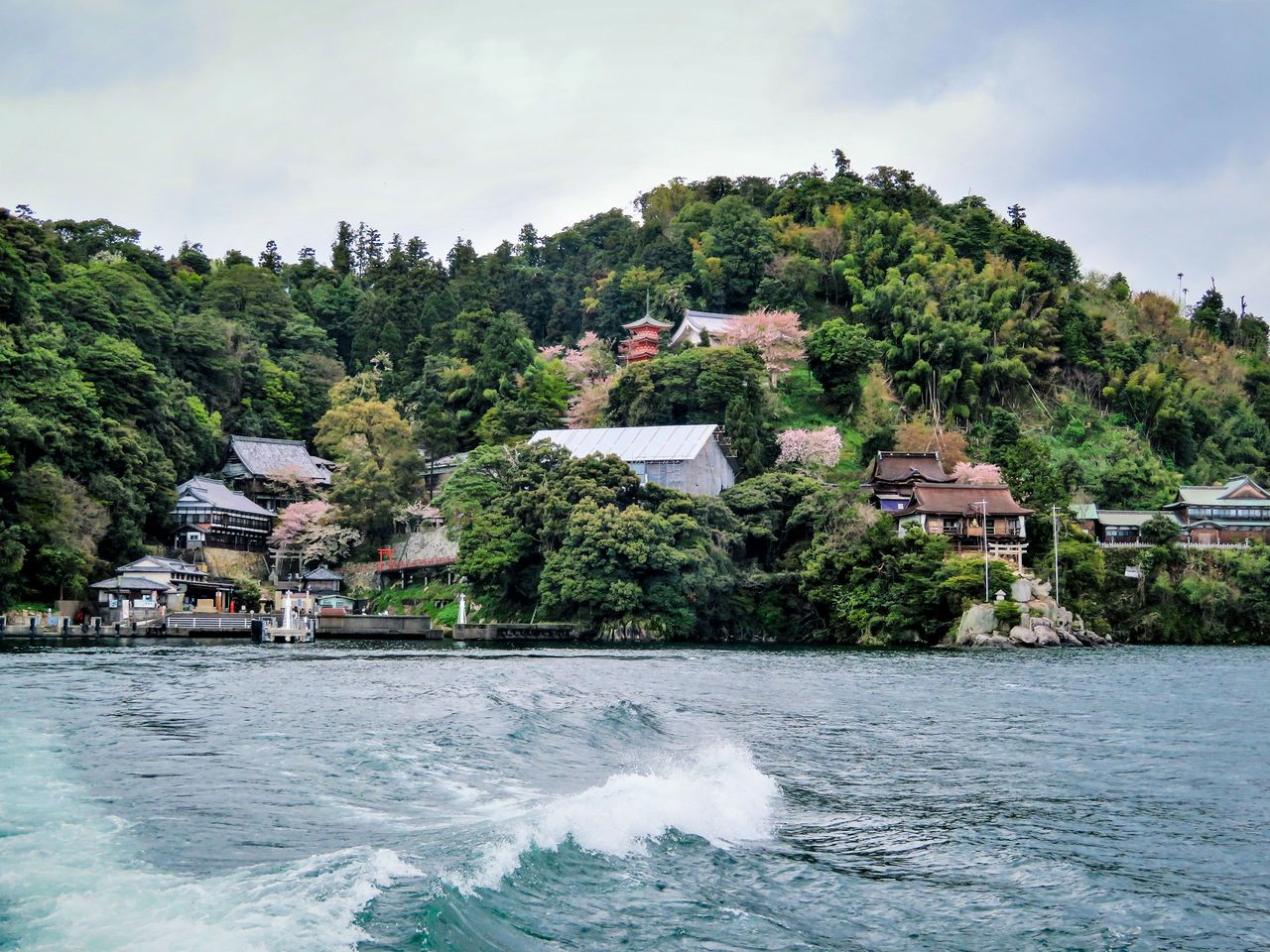 معبد تسوكوبوسوما على ضفاف بحيرة بيوا (© شيبويا نوبوهيرو).