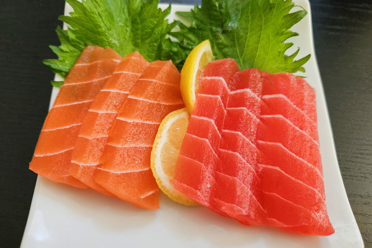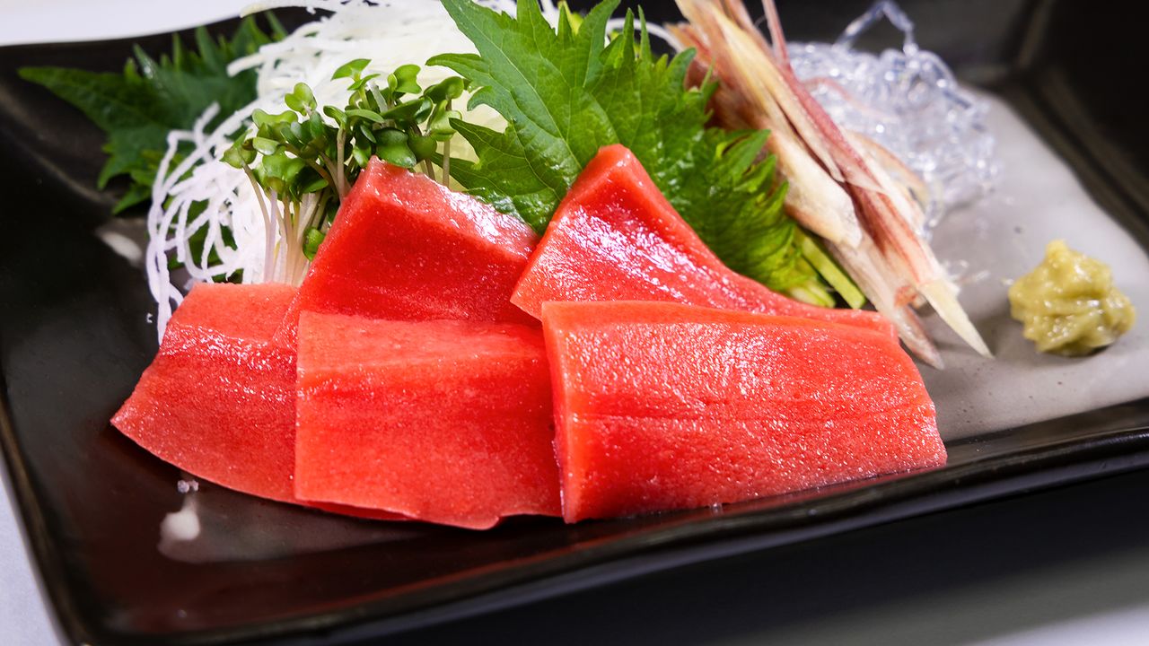 طبق تونة ساشيمي الخالي من الدهون هو الوجبة المثالية مع كوب من مشروب الساكي. إنه مزين أيضاً بشرائح الدايكون وأوراق البريلا والواسابي، يا لها من وجبة شهية. لكن ما تم تقديمه لي لم يكن سمكاً حقيقيا، بل كان بديلاً نباتيًا مصنوعًا من مسحوق الكونياكو (المصنوع من بطاطس الكونجاك) ومكونات أخرى.