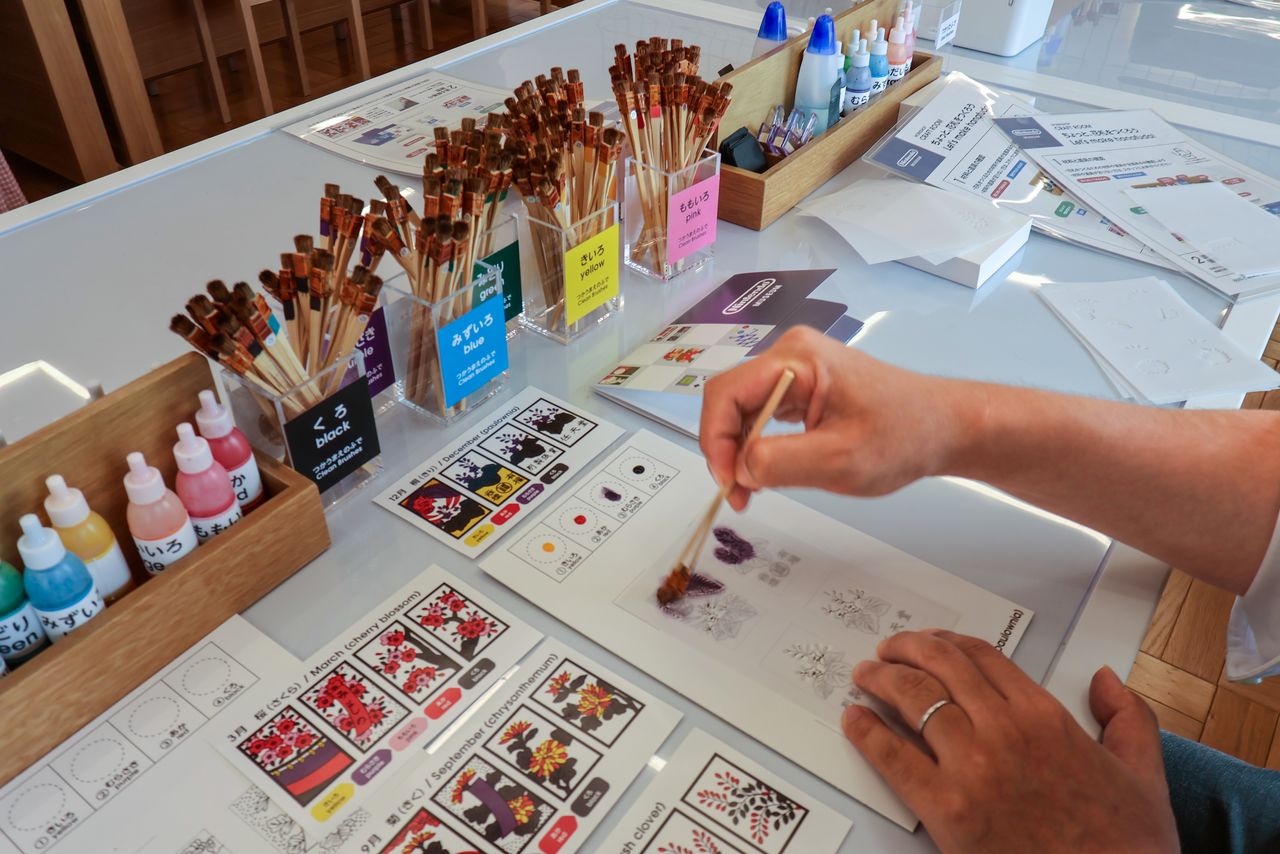 صنع بطاقات هانافودا ذات الألوان الزاهية .(© Nippon.com)