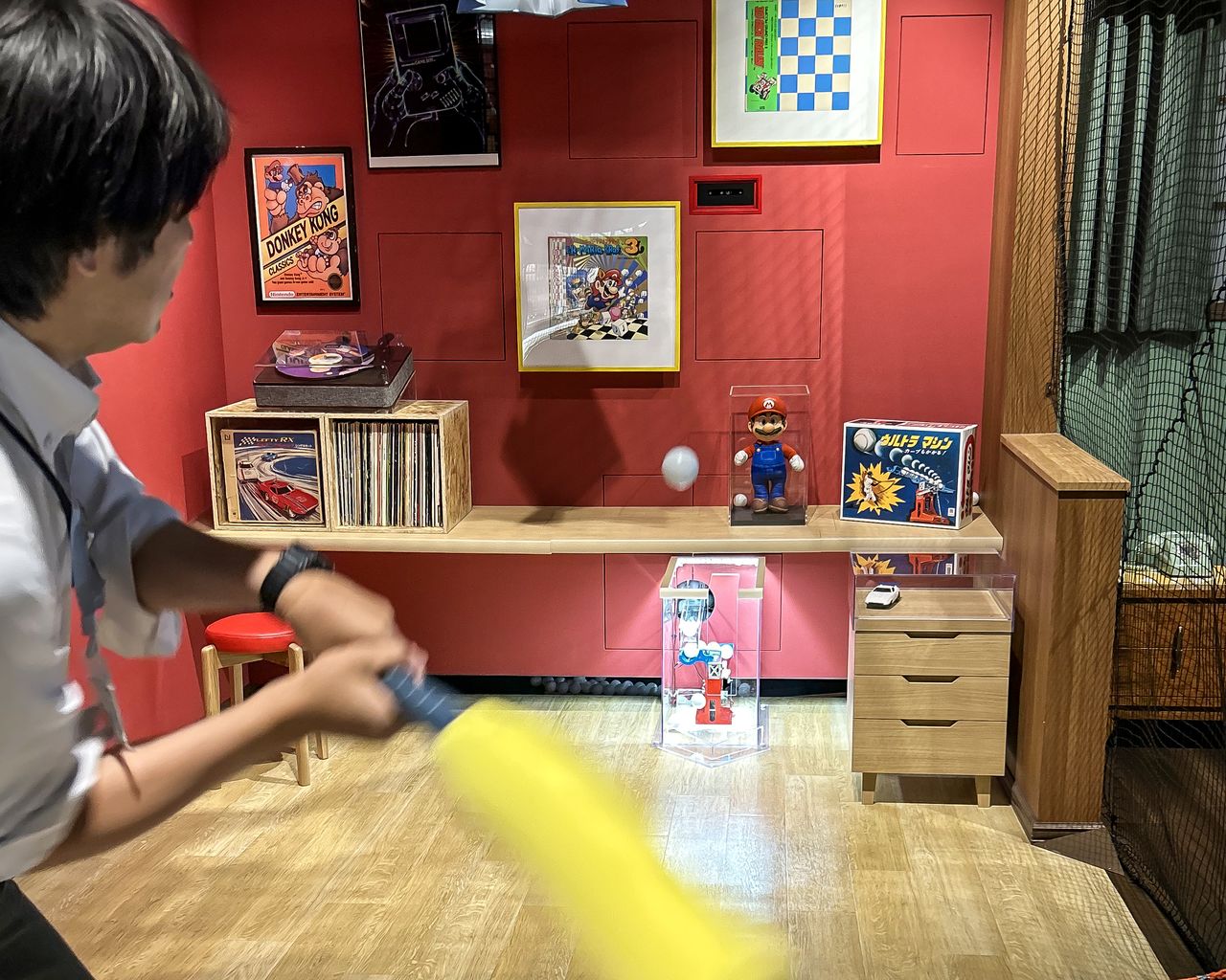 توجد تحت كل وحدة تحكم أجهزة ألعاب قديمة، تتضمن إصدارات يابانية ودولية. ويمكن للزوار أيضا الاستماع إلى موسيقى الألعاب.