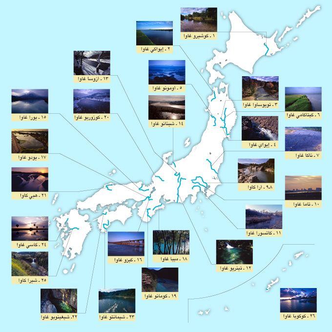 مصدر بيانات الأنهار: أنهار اليابان التي تصدرها شعبة المياه وإدارة الكوارث التابعة لوزارة الأراضي والبنية التحتية والنقل والسياحة.