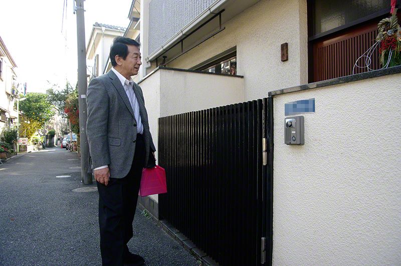كوندو أمام منزل إكينامي وبيده وجبة أوسيئتشي ريوري.