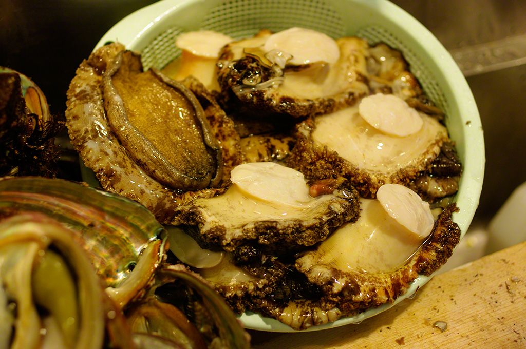 يتم شراء حيوان أذن البحر من أجود الأنواع من سوق تسوكيجي لبيع الأسماك ويتم تنظيفه باليد.