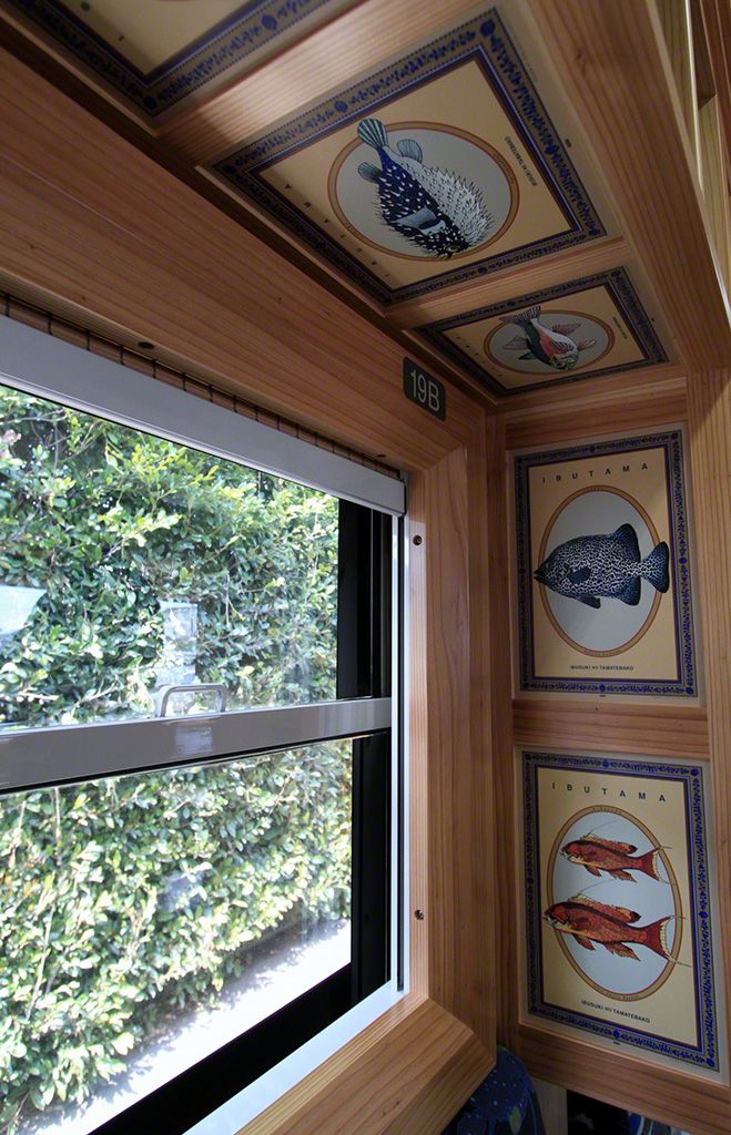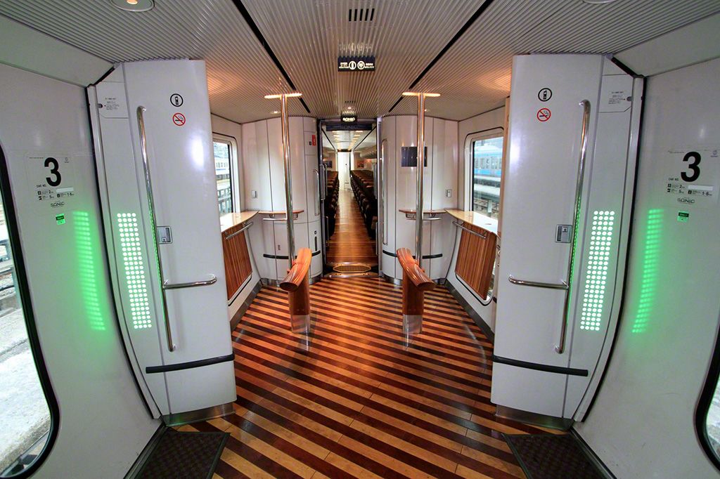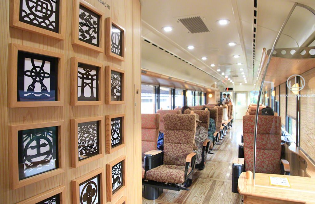 امتنع المصممون عن استخدام الخشب في عربات السكك الحديدية في اليابان منذ عام ١٩٧٢، وذلك بسبب اشتعال النيران في قطار في نفق هوكوريكو، وخلف وراءه ٣٠ قتيلآ ومئات من الجرحى. وإن خلفية إيجي ميتو أوكا في تصميم الأثاث جعلت من الصعب عليه تصديق الإستغناء التام عن الخشب في القطارات وذلك إيمانا منه بأن التجهيزات الخشبية تضفي شعورا بالدفء والراحة لايوجد له مثيل في المواد الأخرى، لذلك قام إيجي ميتو أوكا والفريق الخاص به بتغطية الخشب بمواد مضادة للحريق لضمان سلامة الركاب وتقديم مستويات لم يسبق لها مثيل من حساسية الفخامة والتصميم للركاب. إن الإبتكارات التي أدخلت تشمل تزيين قلب القطارات باستخدام المواد التقليدية الحرفية اليابانية مثل ورق الذهب والنسيج من محافظة فوكوكا. هذه ليست سوى بعض الطرق التي ساعدت على جعل السفر بالسكك الحديدية تجربة ممتعه.