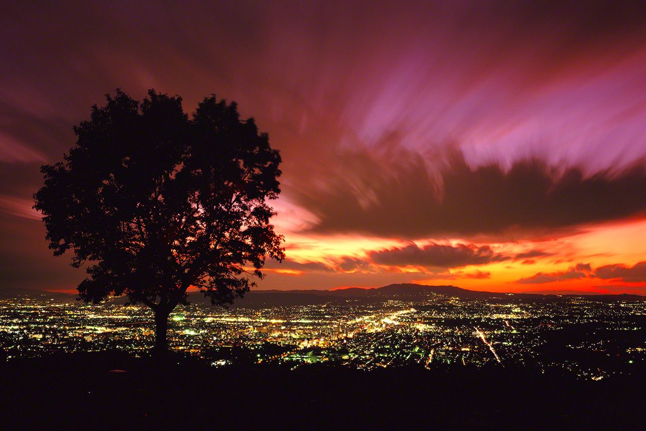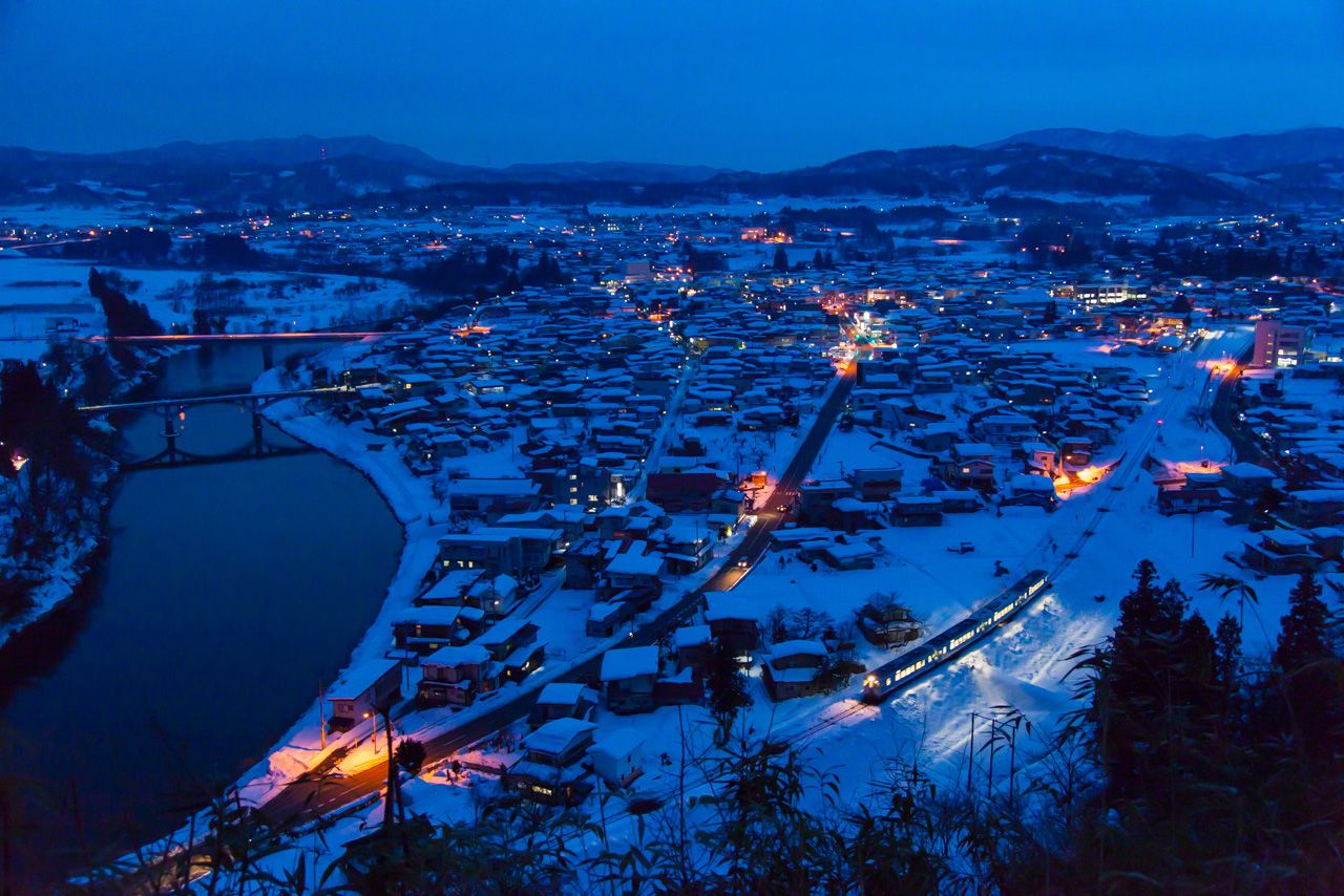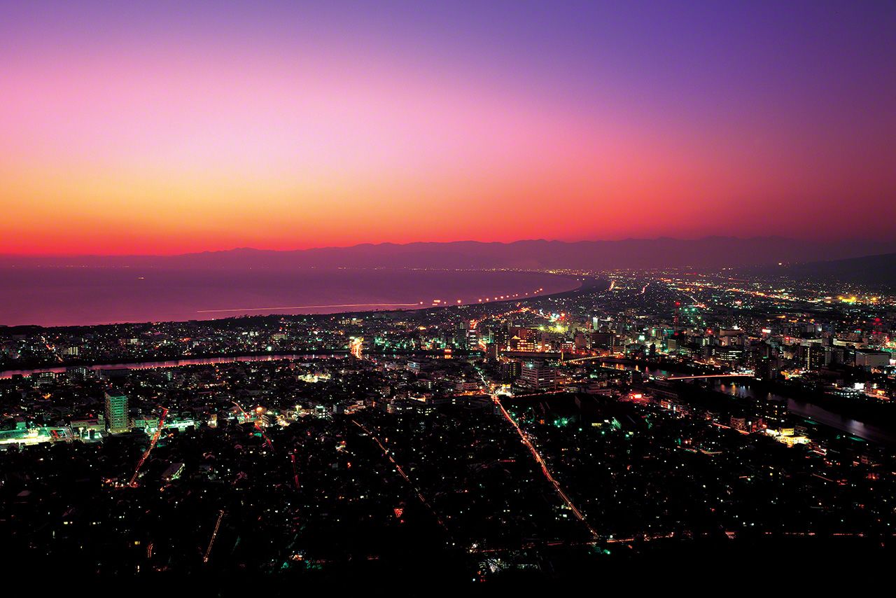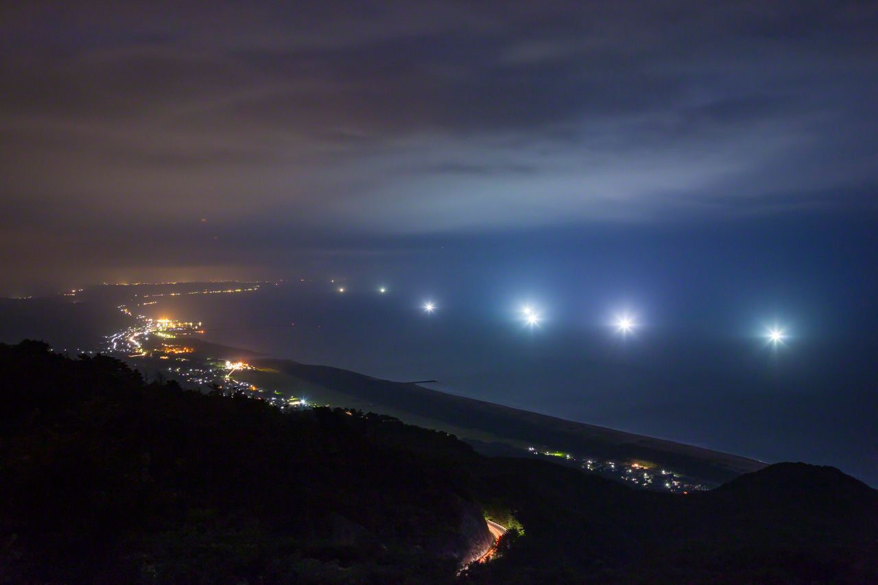 أضواء في مدينة موتسو بشكل الفراشات خطافية الذيل. ينظر إليها من سطح مراقبة كابوسياما في محافظة أوموري