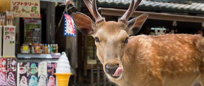 عادة ما تتبع الغزلان نمط متراخ في أكل العشب والتجول في طرقات المدينة. حيث أن هذا الروتين يبدأ مبكرا مع خروج غريب للحيوانات من سباتها طوال الليل في الغابات خلف معبد كاسوغا، حيث تتسكع في التقاطعات الفارغة وتتهادى في وسط المدينة. ثم تعود أدراجها في المساء عائدة للغابات بعد يوم حافل من تقليم الحشائش وتسميدها إلى التأمل أثناء مضغ طعامها المجتر.