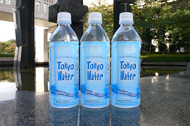 ماء حنفية طوكيو، المنتج من المعالجة الحديثة للمياه ، تباع في عبوات بلاستيكية أيضا.