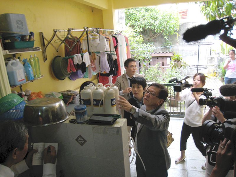 زيارة منزل ماليزي، وجد الوفد من اليابان مجموعة من أجهزة تنقية المياه مركبة.