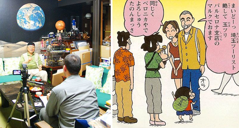 مقابلة مارك برنابا مع ليجي ماتسوموتو وظهوره في مانغا شين تشان، العدد ٤٩ © أوسوي يوشيتو / فوتاباشا.