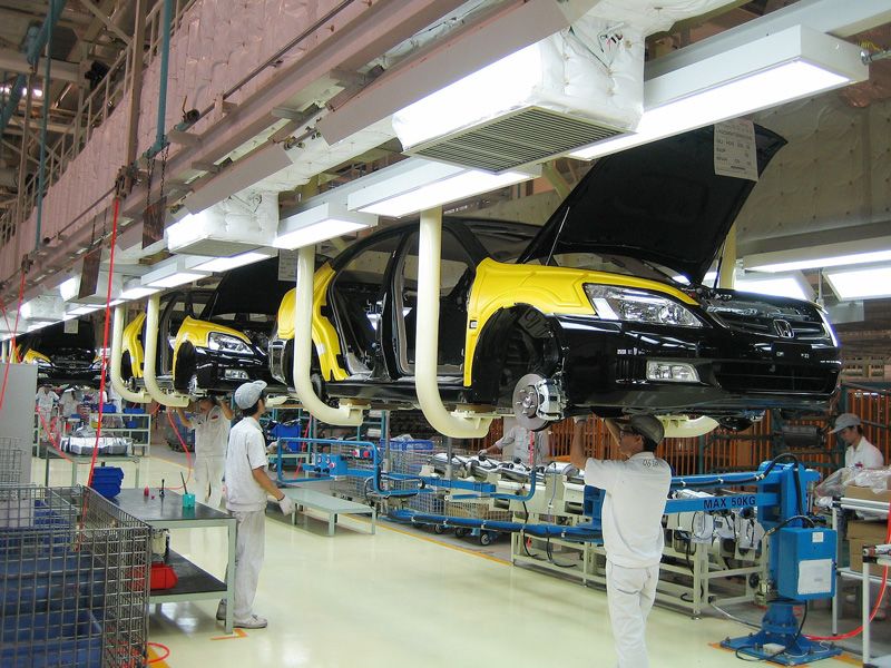 مصنع هوندا المشترك في قوانغتشو في مقاطعة قوانغدونغ الصينية. حيث تتجمع هناك مصانع تصنيع السيارات وقطع الغيار بما في ذلك اليابانية في دلتا نهر اللؤلؤة= تصوير ٢٠٠٦ (جيجي)