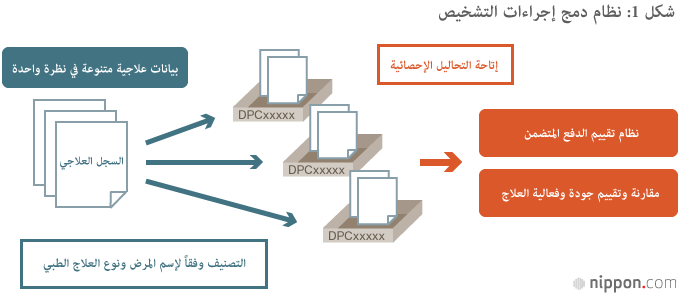 وتقوم الرعاية الطبية في اليابان على نظام الدفع مقابل الخدمات الطبية، حيث يتم تسجيل كل الموارد الطبية التي دخلت في علاج المريض كعناصر في الفاتورة. وتم البحث عن نظام دفع شامل كبديل يقوم على معدلات تطبق بشكل يومي، استجابة للنقد الشديد لمثل هذا النظام الذي يشجع على العلاج والدواء الزائدين عن الحاجة. ويقدم نظام DPC تلك التصنيفات لتحديد معدلات كل وحدة. وهكذا منذ أن تم إدخال نظام التسعيرة الموحدة لليوم في عام 2003 في 82 مستشفى للعلاجات المتقدمة، مثل المستشفيات الكبرى بمراكز الطب بالجامعات، انضمت المزيد من المستشفيات من تلقاء نفسها لتلك المنظومة. وفي نهاية مارس/ آذار، كان هناك حوالي 1860 من المستشفيات إما مشاركة أو تستعد للاشتراك في تلك المنظومة، ويتم إضافة أكثر من 8 ملايين وحدة من البيانات السريرية سنويا. ويستطيع نظام DPC تقديم المزيد من القيمة لكونه قاعدة بيانات مبنية بشكل جيد.