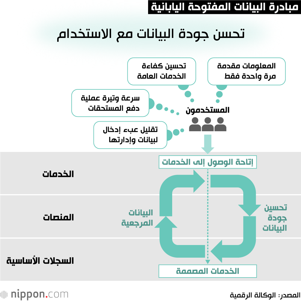 وترى اليابان أن الاستخدام الواسع للبيانات هو مفتاح حل المشكلات الاجتماعية وضمان بيئة تنافسية في مجتمع رقمي. وفي صميم إستراتيجيتها للبيانات الشاملة، يتم الترويج للبيانات المفتوحة والمعلومات التي يمكن لأي شخص الوصول إليها أو استخدامها أو مشاركتها. من خلال الكشف عن البيانات العامة على نطاق واسع، وتتطلع الحكومة إلى تحسين حياة السكان وتحفيز النشاط التجاري، والمساهمة في التنمية الاجتماعية والاقتصادية.