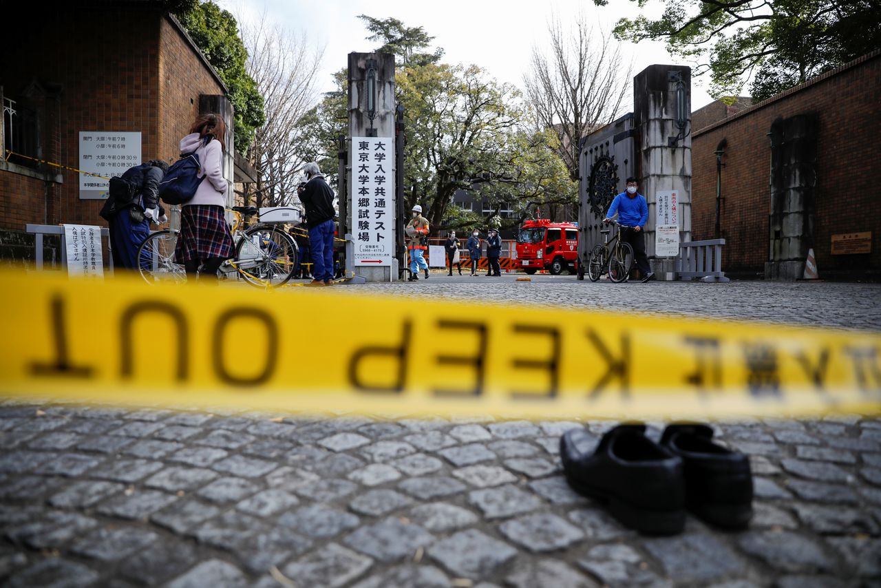 الشرطة تفحص موقع حادث الطعن خارج حرم جامعة طوكيو. رويترز.