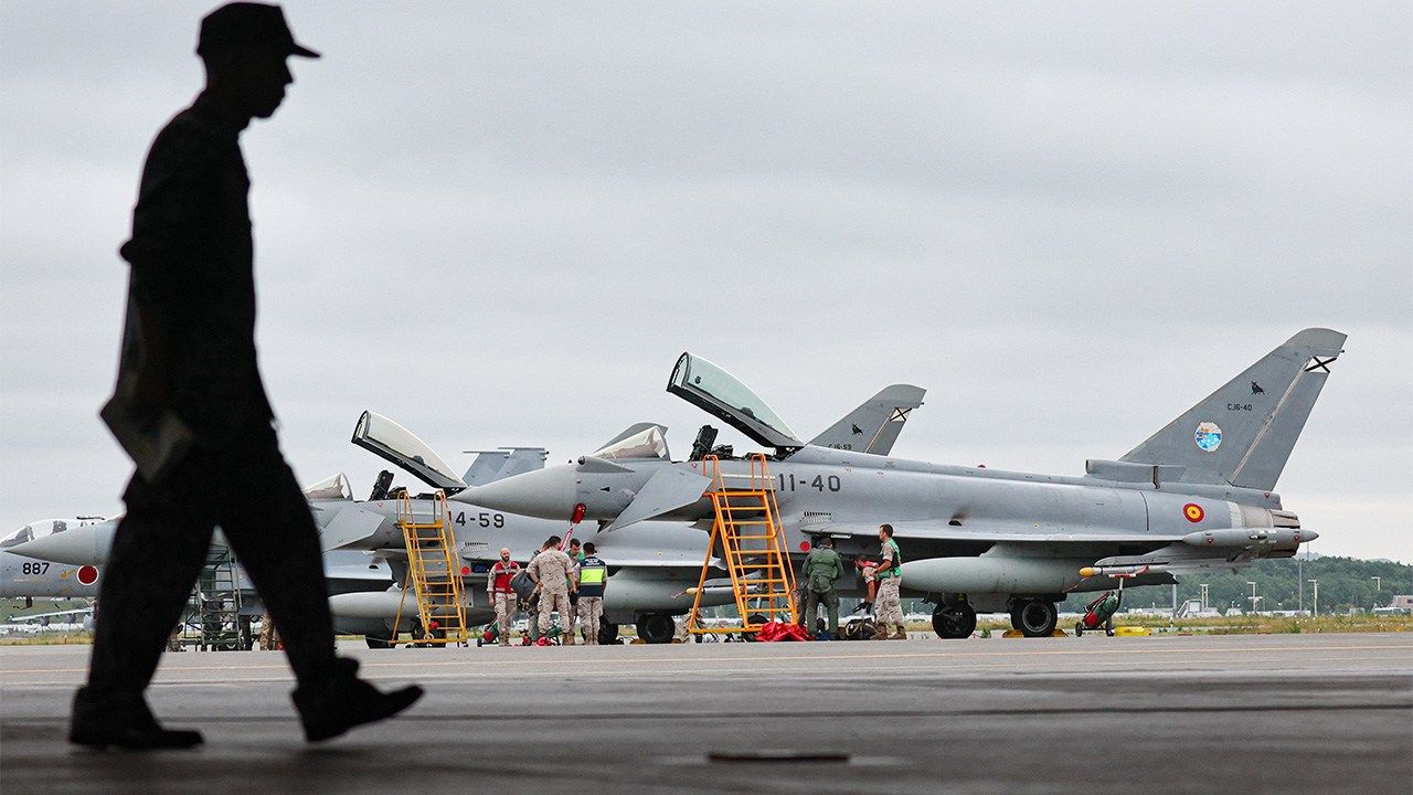(النص الأصلي باللغة اليابانية، الترجمة من الإنكليزية. صورة العنوان: طائرات يوروفايتر من إسبانيا تتجمع في قاعدة تشيتوسي الجوية في هوكايدو في 19 يوليو/ تموز 2024، لإجراء تدريبات مشتركة مع قوات الدفاع الذاتي الجوية اليابانية. © جيجي برس)