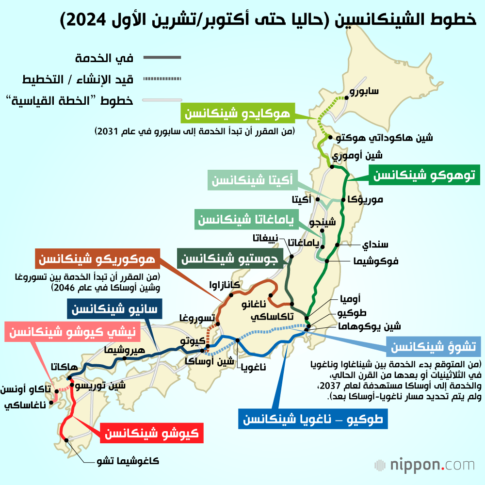 (المقالة الأصلية منشورة باللغة اليابانية، الترجمة من الإنكليزية. صورة العنوان: قطار هوكوريكو شينكانسين، في الأعلى، وقطار تشوؤ شينكانسين الخطي، © كيودو)
