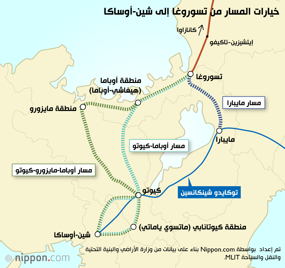 بدأت وكالة JRTT بإجراء تقييم بيئي للمناطق المقترحة في عام 2019، ووجدت أن البناء حول محطتي كيوتو وشين أوساكا سيكون في غاية الصعوبة بسبب المسارات العديدة الموجودة والمباني المحيطة، وأن الأمر يتطلب تدابير مكثفة لإدارة المياه الجوفية وإدارة التربة المحفورة. وقد أبلغت وزارة الأراضي والبنية التحتية والنقل والسياحة الحكومة بأن أيّا من المسارات الثلاثة المقترحة حول كيوتو سيستغرق فعليا ما يقرب من 20 إلى 28 عاما، وسيبدأ تشغيل الخط في خمسينيات القرن الحالي على أقرب تقدير.