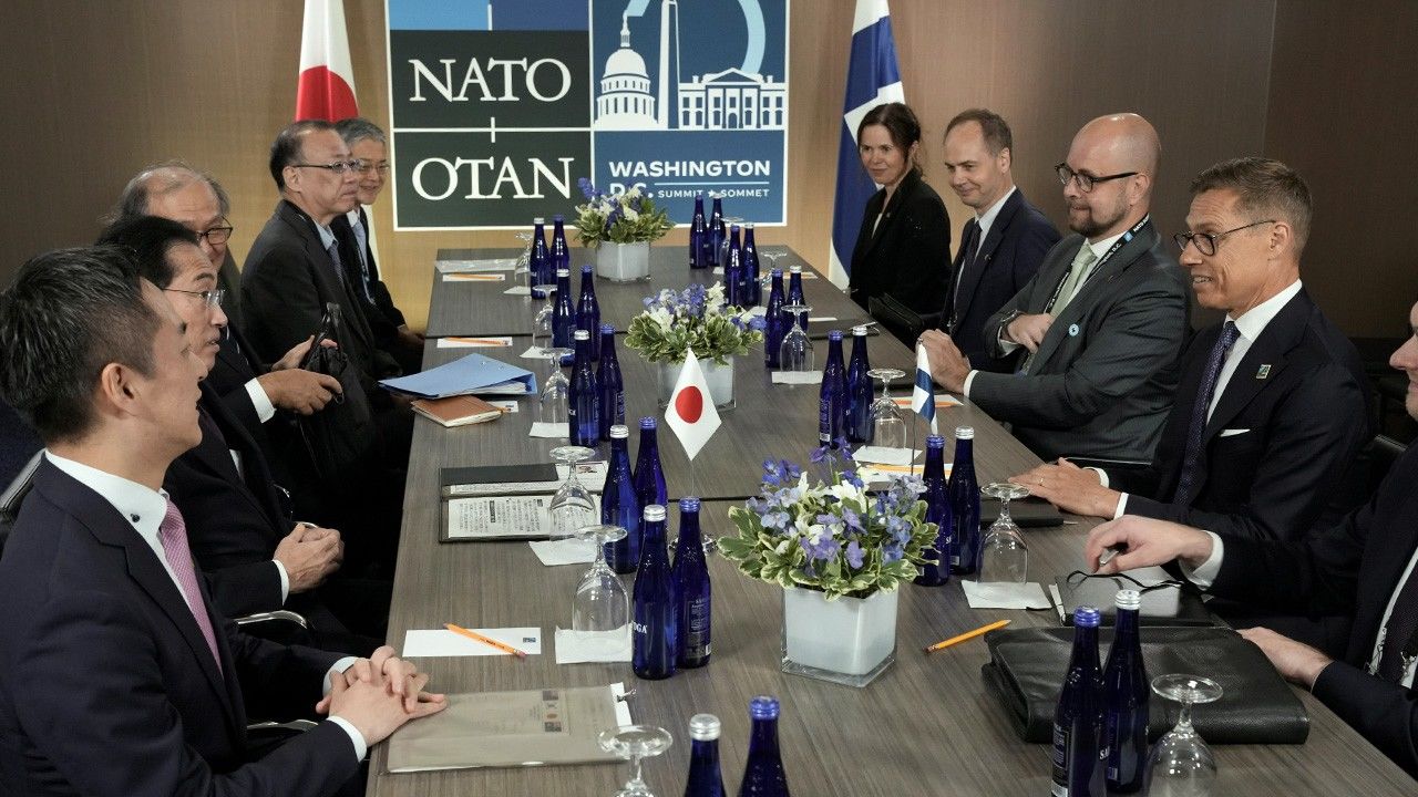(النص الأصلي باللغة اليابانية، الترجمة من الإنكليزية. صورة العنوان الرئيسي: رئيس الوزراء كيشيدا فوميئو، الثاني من اليسار، يلتقي بالرئيس الفنلندي ألكسندر ستوب، أقصى اليمين، على هامش قمة حلف شمال الأطلسي في واشنطن العاصمة في 11 يوليو/ تموز 2024. © إس تي تي - ليتيكوفا/سيبا الولايات المتحدة الأمريكية/ عبر رويترز)