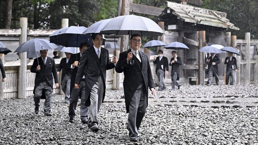 (النص الأصلي باللغة اليابانية، الترجمة من الإنكليزية. صورة العنوان الرئيسي: رئيس الوزراء إيشيبا شيغيرو في المقدمة يزور ضريح إيسي في السادس من يناير/ كانون الثاني 2025 © كيودو)