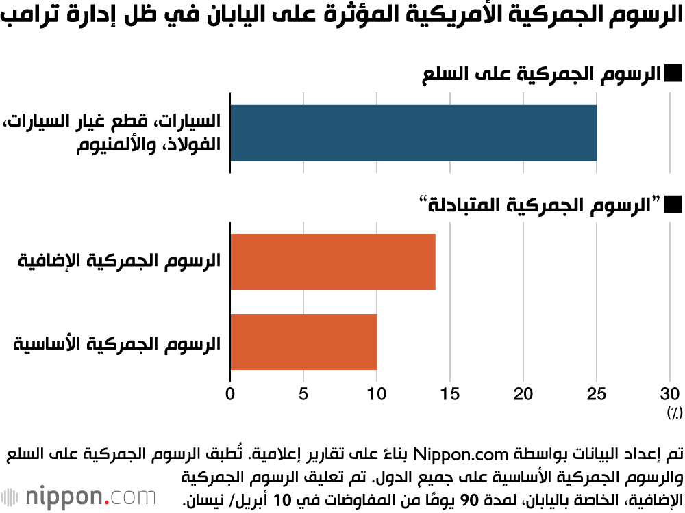 إذا افترضنا انتهاء المفاوضات دون اتفاق، فإن التعريفة الجمركية الإضافية ستؤثر حتمًا على الاقتصاد الياباني. حيث شهدت صادرات اليابان إلى الولايات المتحدة نموًا كنسبة مئوية من إجمالي صادراتها، لا سيما صادراتها من السيارات. وتمثل التعريفة الجمركية البالغة 25% ضربة موجعة قد تتلاشى بسببها أرباح صناعة السيارات هذا العام. وحتى لو تم إلغاء التعريفات الجمركية على اليابان، فإن اليابان ستشعر بآثار التباطؤ الاقتصادي العالمي إذا لم تُلغِها الولايات المتحدة عالميًا.