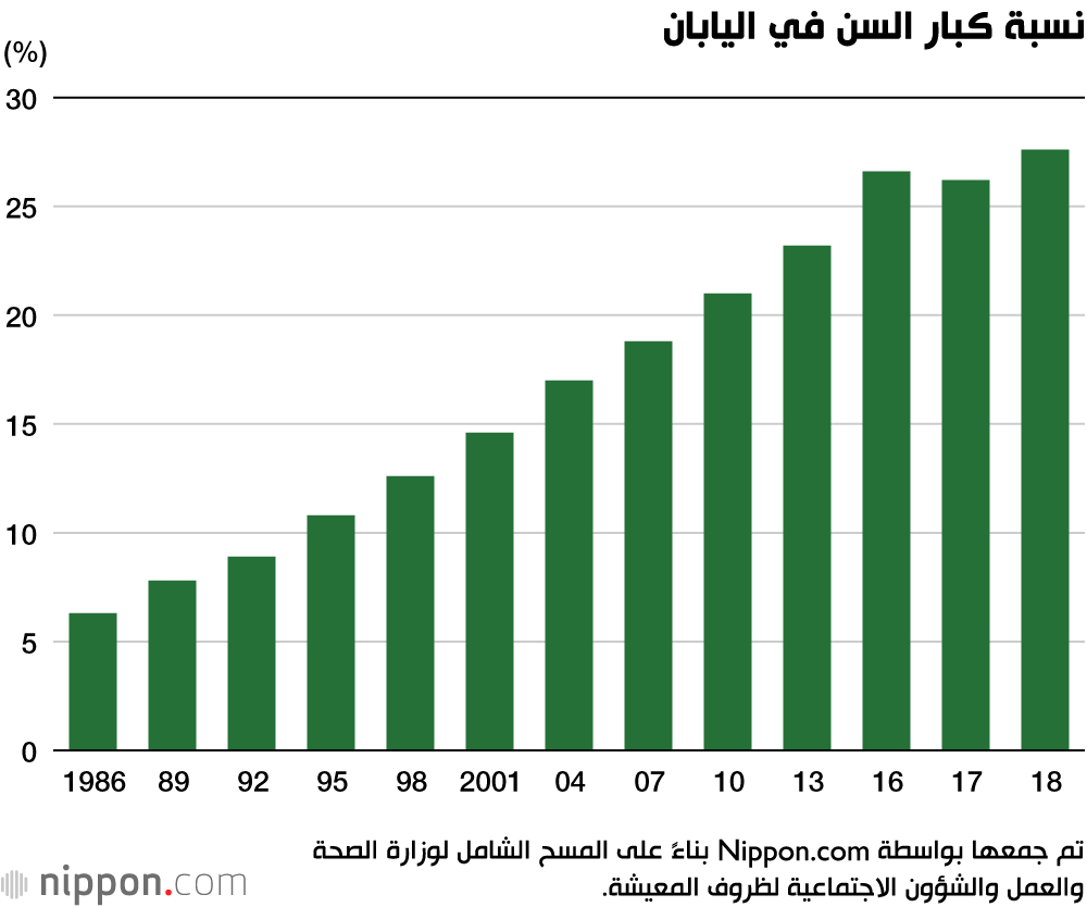أكثر من ربع الأسر اليابانية يأتي على رأسها شخص يبلغ من العمر 65 عامًا أو أكبر. توصلت دراسة استقصائية أجرتها وزارة الصحة والعمل والرعاية الاجتماعية إلى أنه حتى يونيو/ حزيران 2018، كان هناك 14.1 مليون من هذه الأسر، بما في ذلك الأسر التي لديها أفراد غير متزوجين تقل أعمارهم عن 18 عامًا. هذا يمثل 27.6٪ من جميع الأسر في اليابان، مقارنة مع 6.3٪ فقط في عام 1986.