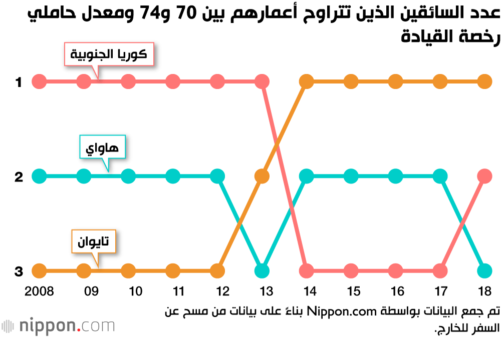 تم جمع البيانات بواسطة Nippon.com بناءً على بيانات مسح السفر للخارج 2019 يتم تمييز الوجهات في آسيا وأوقيانوسيا باللون الأصفر.