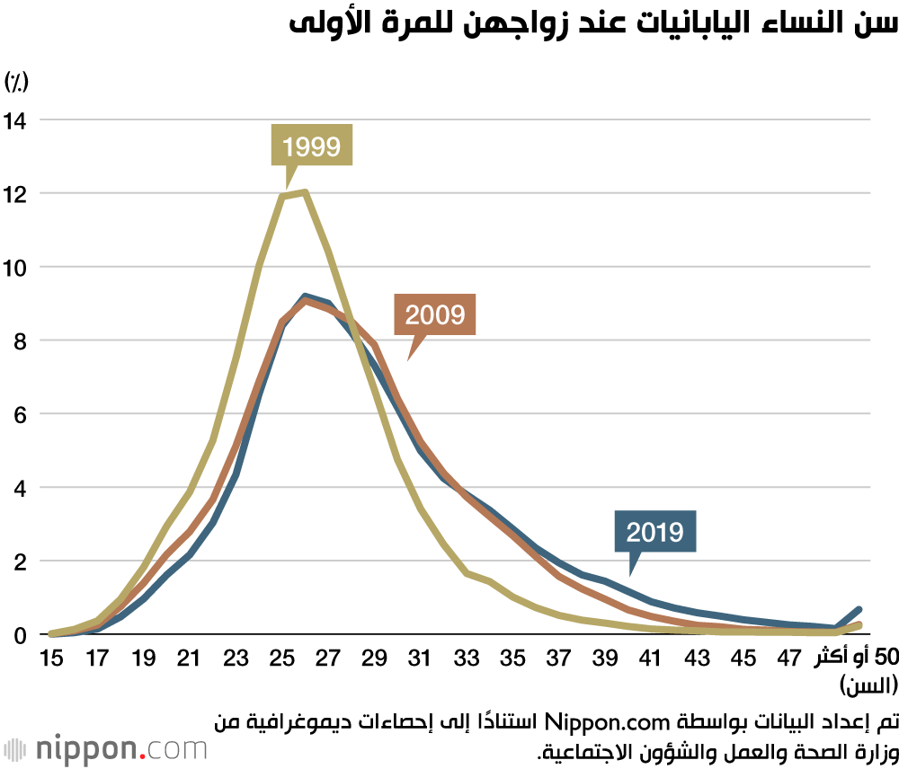 نسبة من يتزوجون مجدداً (ليست الزيجة الأولى) من بين إجمالي الزيجات في اليابان