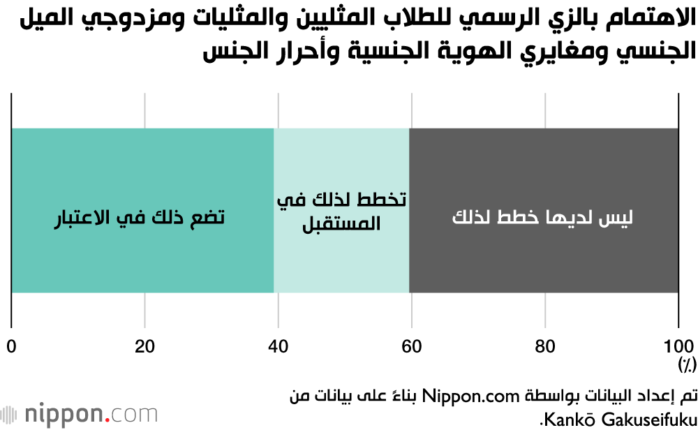 في أبريل/ نيسان 2015، أصدرت وزارة التعليم والثقافة والرياضة والعلوم والتكنولوجيا إشعارًا مفاده ”اتخاذ التدابير المناسبة تجاه الطلاب فيما يتعلق بالهوية الجنسية“. ببطء، ولكن بثبات، تولي المدارس اهتمامًا أكبر لمثل هذا التنوع في الزي الرسمي وتسريحات الشعر والمراحيض وغيرها من المجالات المختلفة.