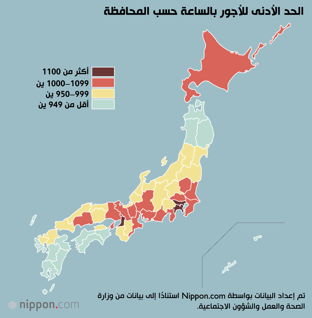 الحد الأدنى للأجور بالساعة في طوكيو سيكون 1163 ين، وفي كاناغاوا 1162 ين، وفي أوساكا 1114 ين، جميعها تتجاوز 1100 ين. في 16 محافظة أخرى، معظمها في المناطق الصناعية الكبرى في اليابان، سيكون الأجر أكثر من 1,000 ين، بما في ذلك سايتاما بـ 1078 ين، وآيتشي بـ 1077 ين، وتشيبا بـ 1076 ين. على الرغم من أنه لن يكون هناك حد أدنى للأجور أقل من 900 ين بعد هذا التعديل، إلا أنه سيكون هناك 12 محافظة، معظمها في مناطق توهوكو وكيوشو وشيكوكو، حيث سيظل الأجر ضمن نطاق أقل من 900 ين.