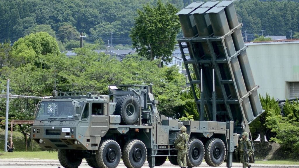 (النص الأصلي باللغة اليابانية، الترجمة من الإنكليزية. صورة العنوان: تم الكشف عن قاذفة الصواريخ الموجهة أرض-بحر من طراز 12 في معسكر يوفوين التابع لقوة الدفاع الذاتي البرية في يوفو، محافظة أويتا، اليابان، ومن المتوقع أن يعزز النظام قدرات الدفاع عن بعد اليابانية. © كيودو)