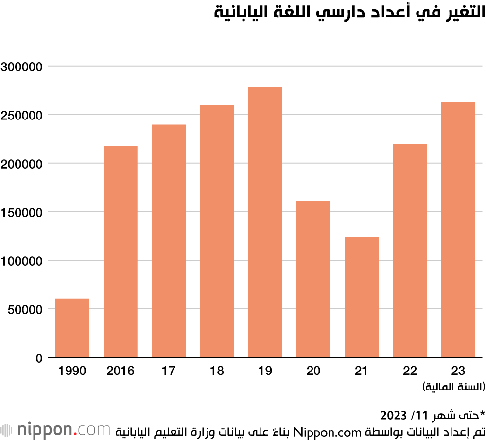 شهد عدد دارسي اللغة اليابانية زيادة ملحوظة خاصة بعد تخفيف قيود فيروس كورونا. ففي عام 2023، وصل العدد الإجمالي إلى 263,170 شخصًا، مما يشير إلى عودة الأعداد إلى مستويات ما قبل الجائحة.