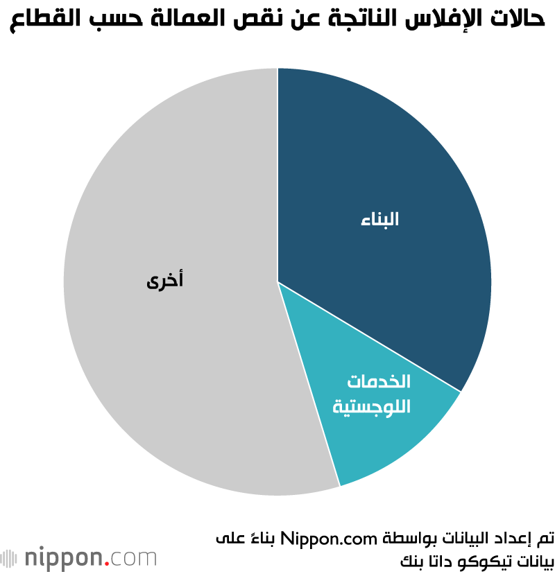 وفقاً لمؤسسة تيكوكو داتا بنك، يمثل قطاعا البناء والخدمات اللوجستية 45.4% من حالات الإفلاس المرتبطة بنقص العمالة. أما من حيث حجم الشركات المتضررة، فإن 80% منها هي شركات صغيرة تضم أقل من 10 موظفين. وقد تزايدت حدة نقص العمالة بشكل ملحوظ بعد تخفيف تدابير جائحة كورونا وتعافي الاقتصاد، مما أدى إلى ضغوط متزايدة على هذين القطاعين، المعروفين بمواجهة تحديات ”مشكلة 2024“.