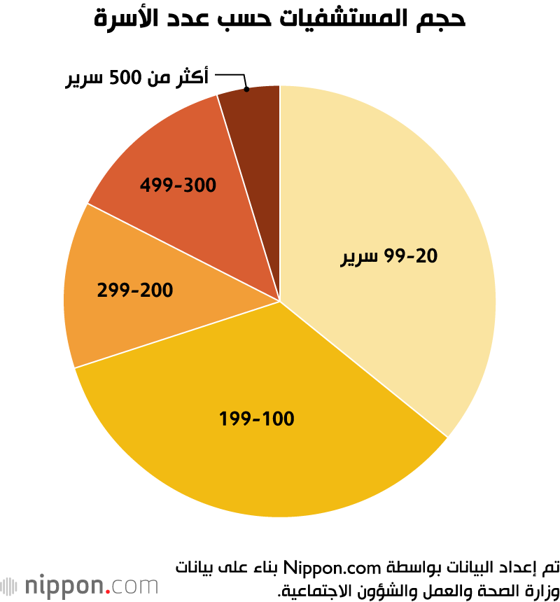 عند تحليل المستشفيات حسب حجمها، تبين أن الفئة الأكثر شيوعًا كانت المستشفيات التي تحتوي على ”50-99 سريرًا“، حيث بلغ عددها 1997 مستشفى، ما يمثل 24.6٪ من الإجمالي. تلتها المستشفيات التي تضم ”100-149 سريرًا“ بواقع 1410 مستشفيات (17.4٪)، ثم ”150-199 سريرًا“ بواقع 1378 مستشفى (17.0٪)، وأخيرًا ”200-299 سريرًا“ بواقع 1013 مستشفى (12.5٪).