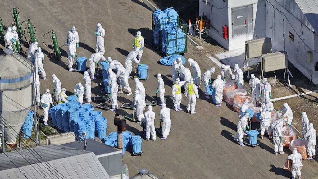 (النص الأصلي باللغة اليابانية، الترجمة من الإنكليزية. صورة العنوان الرئيسي: موظفون رسميون يباشرون عملية إعدام الدواجن في مزرعة دواجن في بلدة أتسوما في محافظة هوكايدو صباح يوم 17 أكتوبر/تشرين الأول عام 2024، © كيودو)