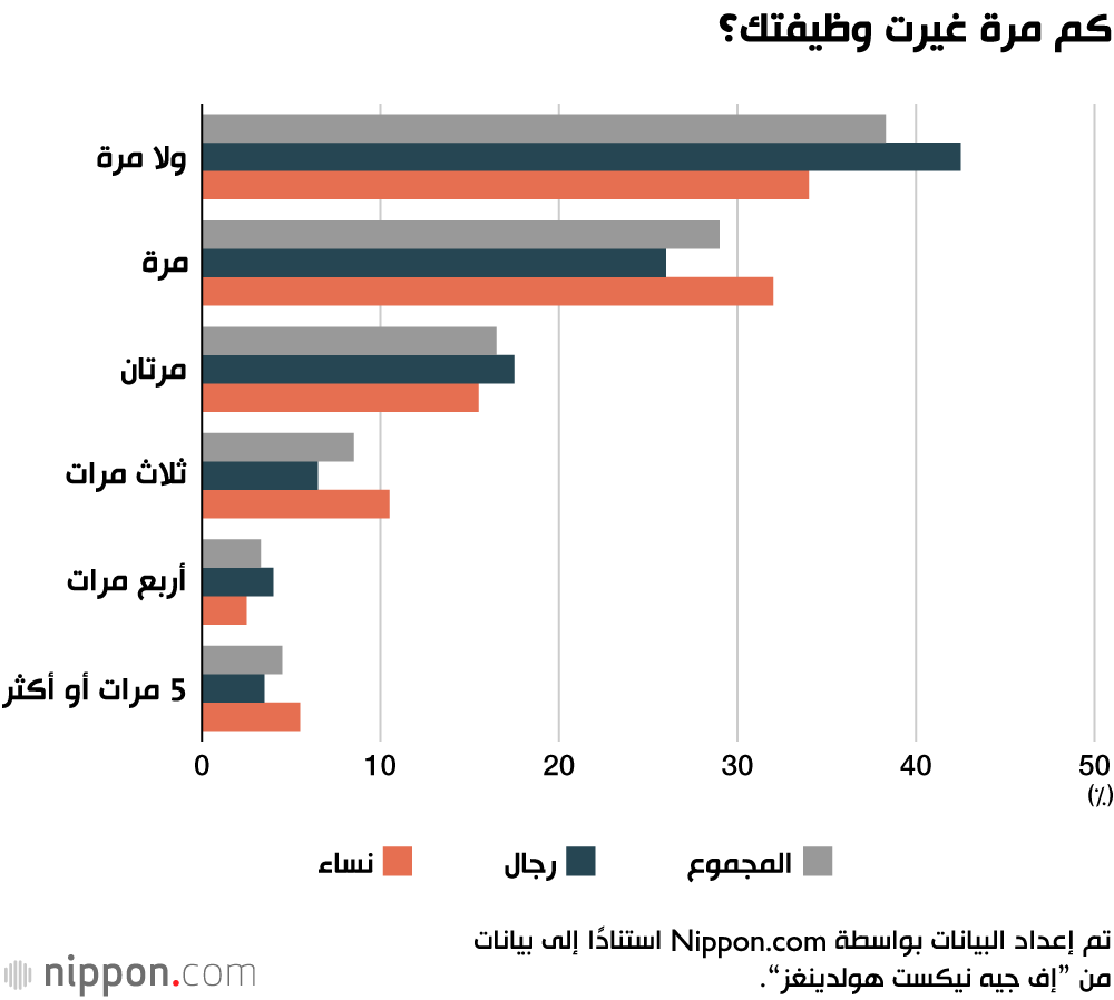 وبيّن الاستطلاع أن 38.3% من المشاركين لم يسبق لهم تغيير وظائفهم من قبل، في حين أن البقية قد غيّروا وظائفهم مرة واحدة على الأقل، مع أكثر من 30% قاموا بذلك مرتين أو أكثر. وفي تعليقها على هذه النتائج، أشارت شركة ”إف جيه نيكست هولدينغز“ إلى أن ”الزمن الراهن يشهد تحولًا أصبح فيه تغيير الوظائف أمرًا شائعًا وطبيعيًا“.