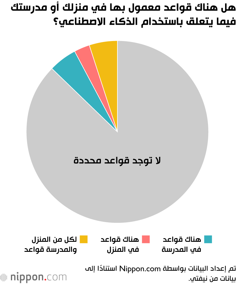 وعند سؤالهم عما إذا كانت هناك أي قواعد مطبقة في المدرسة أو المنزل فيما يتعلق باستخدام الذكاء الاصطناعي، أجاب 87.5% بأنه ليس لديهم قواعد محددة.