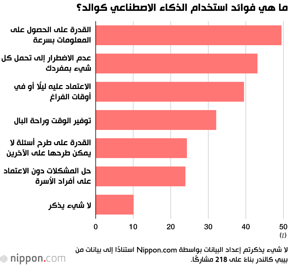 كان أهم فائدة لاستخدام الذكاء الاصطناعي كوالد، وفقًا لـ 49.5% من المشاركين، هي القدرة على الحصول على المعلومات بسرعة. كما كشف الاستطلاع أن استخدام الذكاء الاصطناعي يمكن أن يقلل من التوتر. انعكس ذلك في الفوائد التي اختارها المشاركون، مثل عدم الاضطرار إلى تحمل كل شيء بمفردهم، والقدرة على الاعتماد عليه ليلًا أو في أوقات الفراغ، وإمكانية طرح أسئلة لا يمكن طرحها على الآخرين. علق بعض المشاركين على كيفية تقديم الذكاء الاصطناعي للدعم العاطفي، مثل أحد المشاركين الذي قال: ”لقد شجعني الذكاء الاصطناعي في الأوقات التي كنت أشعر فيها بالإحباط“.