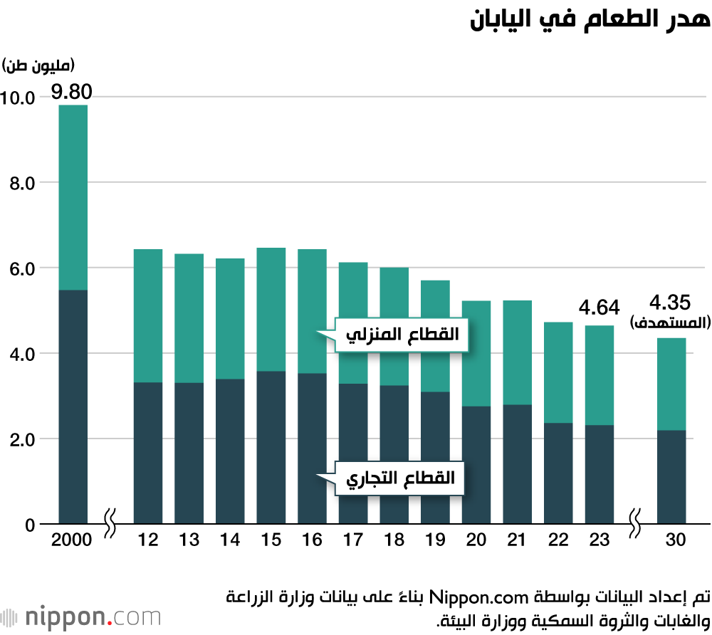 في السنة المالية 2023، انخفض هدر الطعام المقدر في اليابان بمقدار 80 ألف طن مقارنة بالعام السابق، ليصل إلى أدنى مستوى قياسي جديد عند 4.64 مليون طن. وهذا يعادل إجماليًا سنويًا للفرد يبلغ 37 كيلوغرامًا. تم الإعلان عن هذه الأرقام من قبل وزارة الزراعة والغابات والثروة السمكية، ووزارة البيئة، ووكالة شؤون المستهلك.