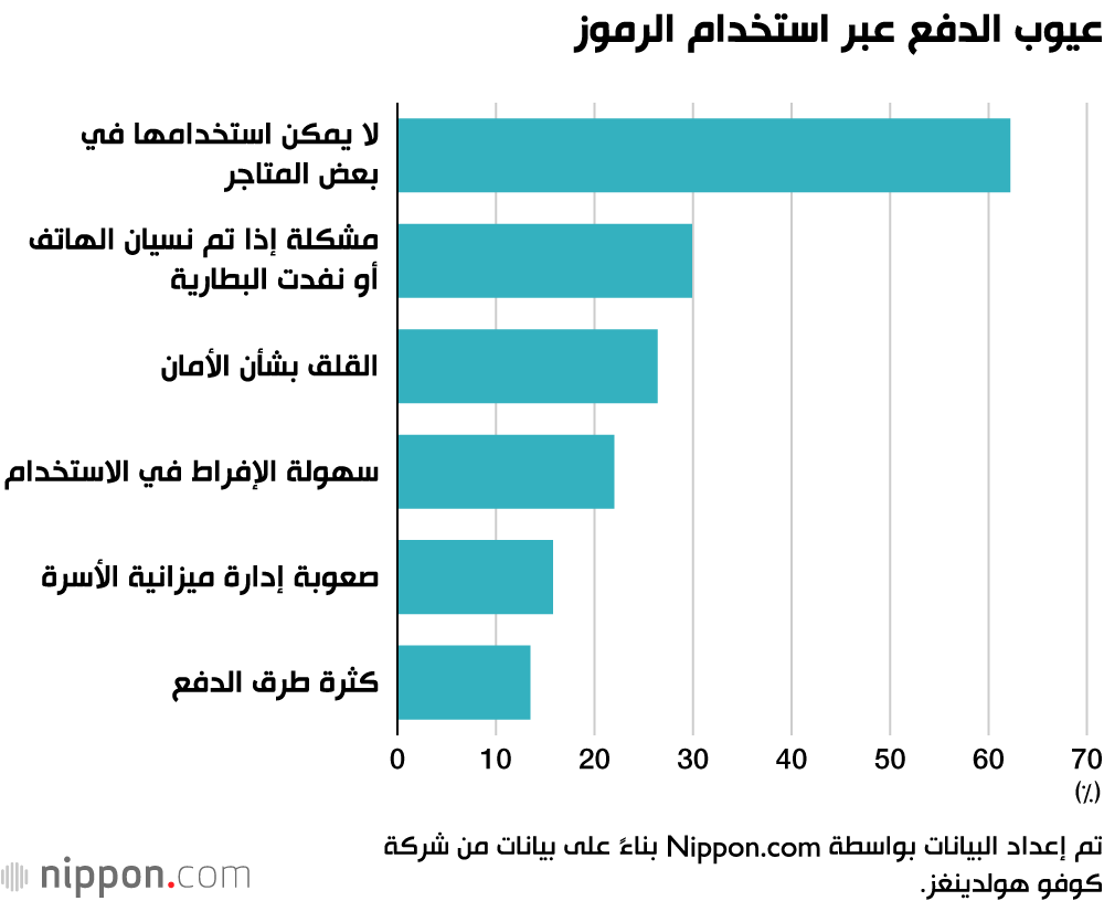 أكثر ما يثير القلق بشأن المدفوعات عبر الرموز هو عدم قبولها في بعض المتاجر، وهو ما أشار إليه 62.2% من المستخدمين. وفي المقابل، لم يُبدِ سوى 26.4% مخاوف تتعلق بـ الاستخدام غير المصرح به أو المشكلات الأمنية الأخرى.