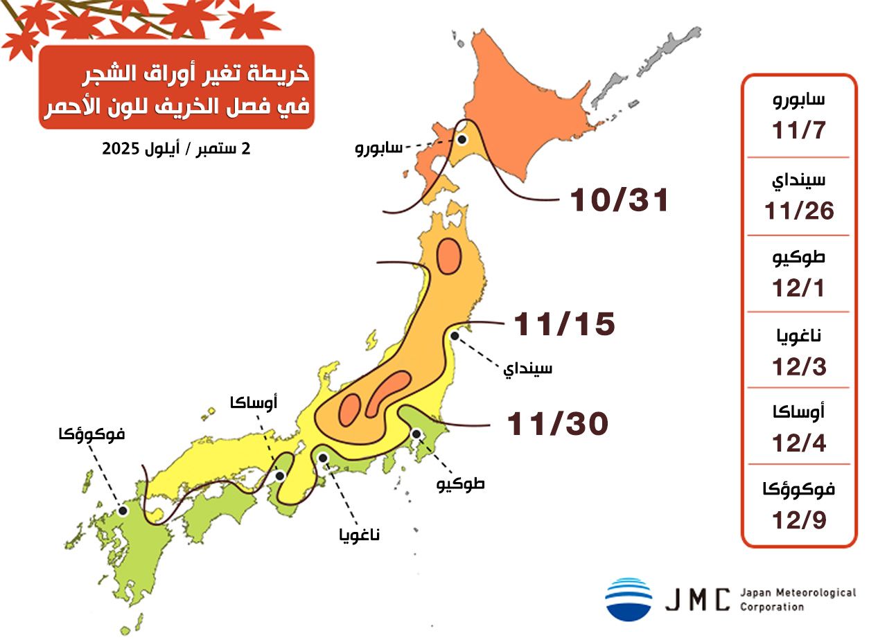 - توقعات ألوان الخريف من شركة الأرصاد الجوية اليابانية، 2025