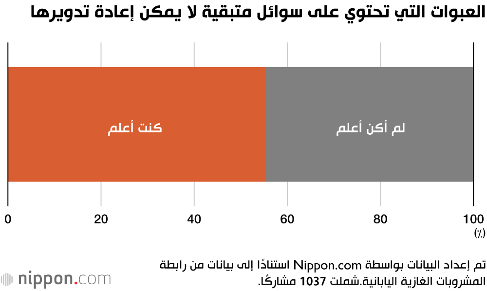 aفي استطلاع وطني أجرته جمعية المشروبات الغازية اليابانية في مطلع سبتمبر/ أيلول 2025، طُلب من المشاركين، الذين تتراوح أعمارهم بين 15 و69 عامًا، التعبير عن آرائهم حول إعادة تدوير العبوات البلاستيكية وعبوات المشروبات الغازية، وقد تم اعتماد 1037 إجابة صحيحة.
