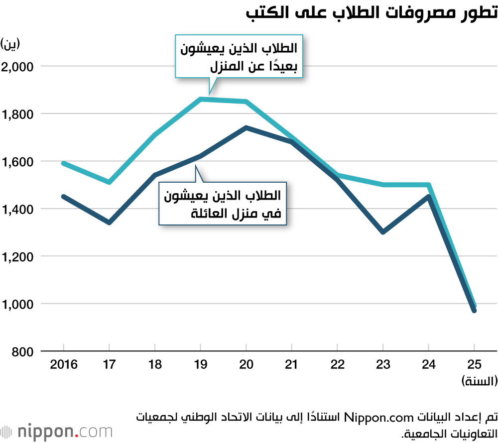 في فبراير/ شباط 2026، أعلن الاتحاد الوطني لجمعيات التعاونيات الجامعية نتائج استطلاع رأي حول حياة الطلاب في اليابان، أُجري في خريف العام السابق. وأظهر تحليل المصروفات الشهرية ارتفاعًا في نفقات الطعام، ما يعكس ارتفاع الأسعار. في المقابل، انخفضت نفقات الكتب، التي كانت تشهد انخفاضًا بالفعل، إلى أقل من 1000 ين للمرة الأولى منذ عشر سنوات.