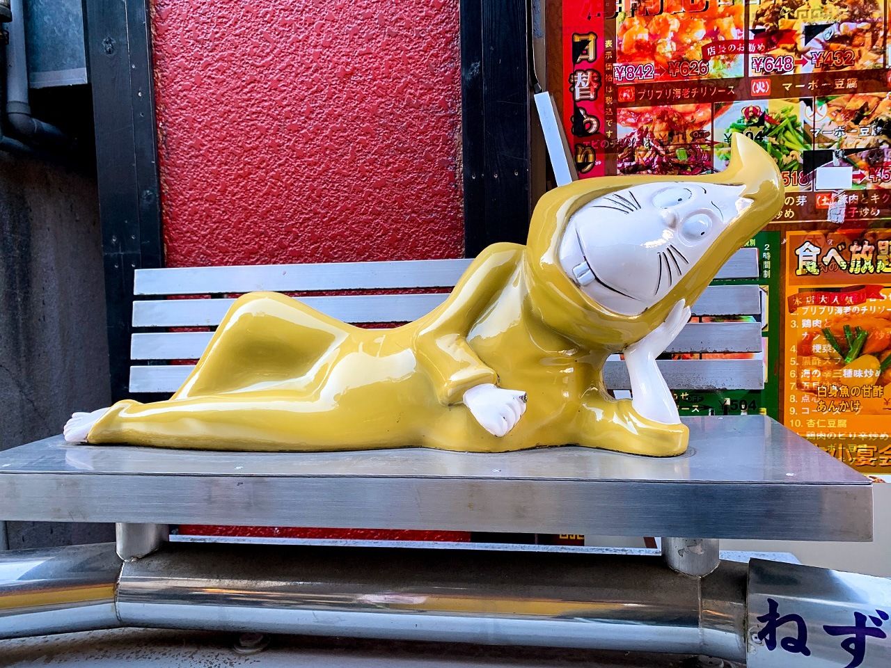 للوهلة الأولى، قد يبدو شارع Tenjin-dōri وكأنه شارع نموذجي للتسوق، ولكن سرعان ما يتكشف للمرء أنه مليء بتماثيل للعديد من الشخصيات التي أبدعها في المانغا الأكثر مبيعًا غيغيغي نو كيتارو. فها هو ذا Ittanmomen (الرجل الفأر) ممدداً على مقعد طويل، وها هي Nekomusume (الفتاة القطة) تركب Ittanmomen (لفافة القطن)، ويرحب كيتارو بالمتسوقين والمارة عند كلا مدخلي الشارع. وقد تم وضع هذه الأعمال الفنية في عام 1991 بناءً على اقتراح من ميزوكي نفسه الذي يبدو أنه كان يتسوق هنا. حتى الآن، ينتاب المرء شعور بالراحة حين يكون هناك. ليس ببعيد عن الشارع يوجد مبنى يضم إبداعات ميزوكي، وهو مبنى الشركة التي تدير الإنتاج الإبداعي الضخم للفنان وتخطط لمشاريع المانغا والأنيمي الجديدة.